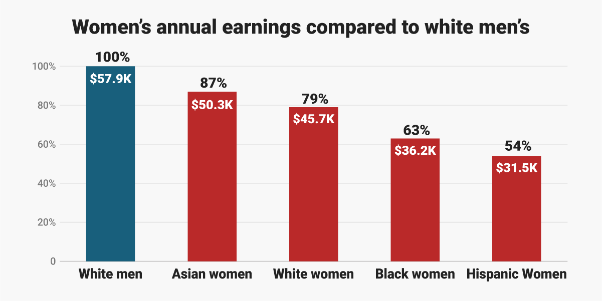 In 2020, women earned 84% of what men earned, according to a pew. The gender wage gap is defined as the difference between median earnings of men and women relative to median earnings of men. The wage gap is even greater for many women.